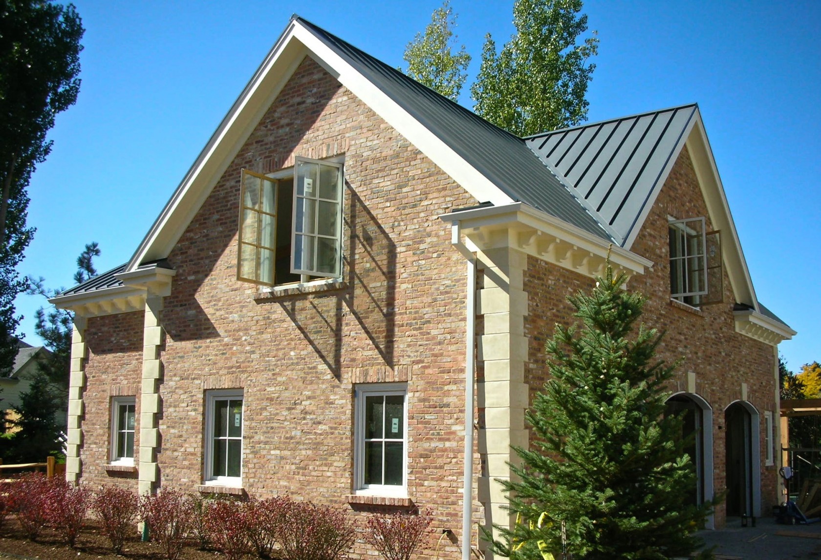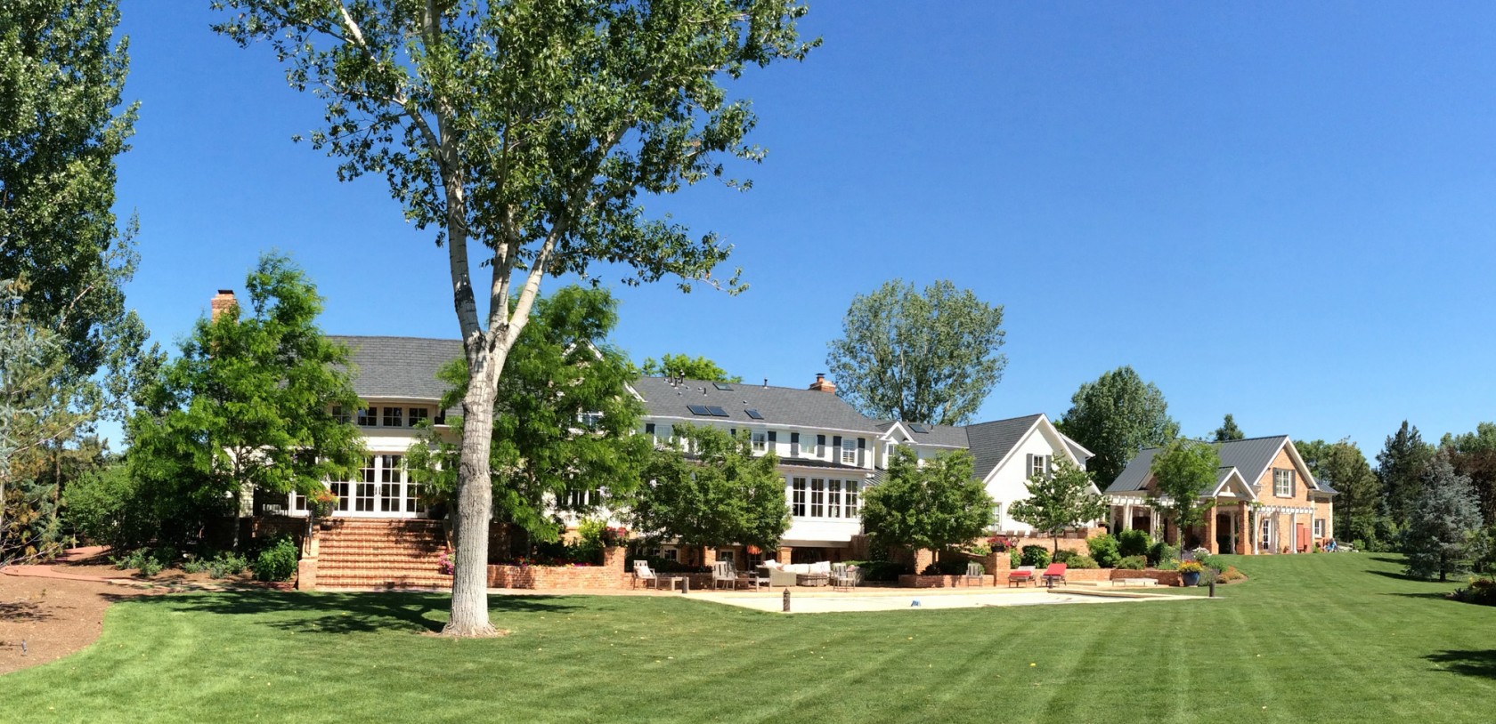Near Denver, CO an aging home in the gracious Cherry Hills Village suburb was remodeled to combine modern amenities and traditional grace. A family room addition was added to one end of the house and a new brick carriage house with ADU living quarters was added at the other end. Everything in between was redesigned and rebuilt to unify the project and create an entirely new home.